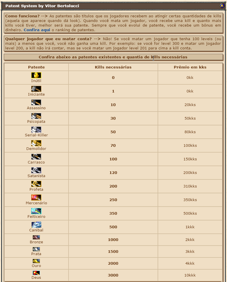 Matar jogadores com mais de 100 leveis a menos que você ou que tenham IP igual ao seu não vai contar.